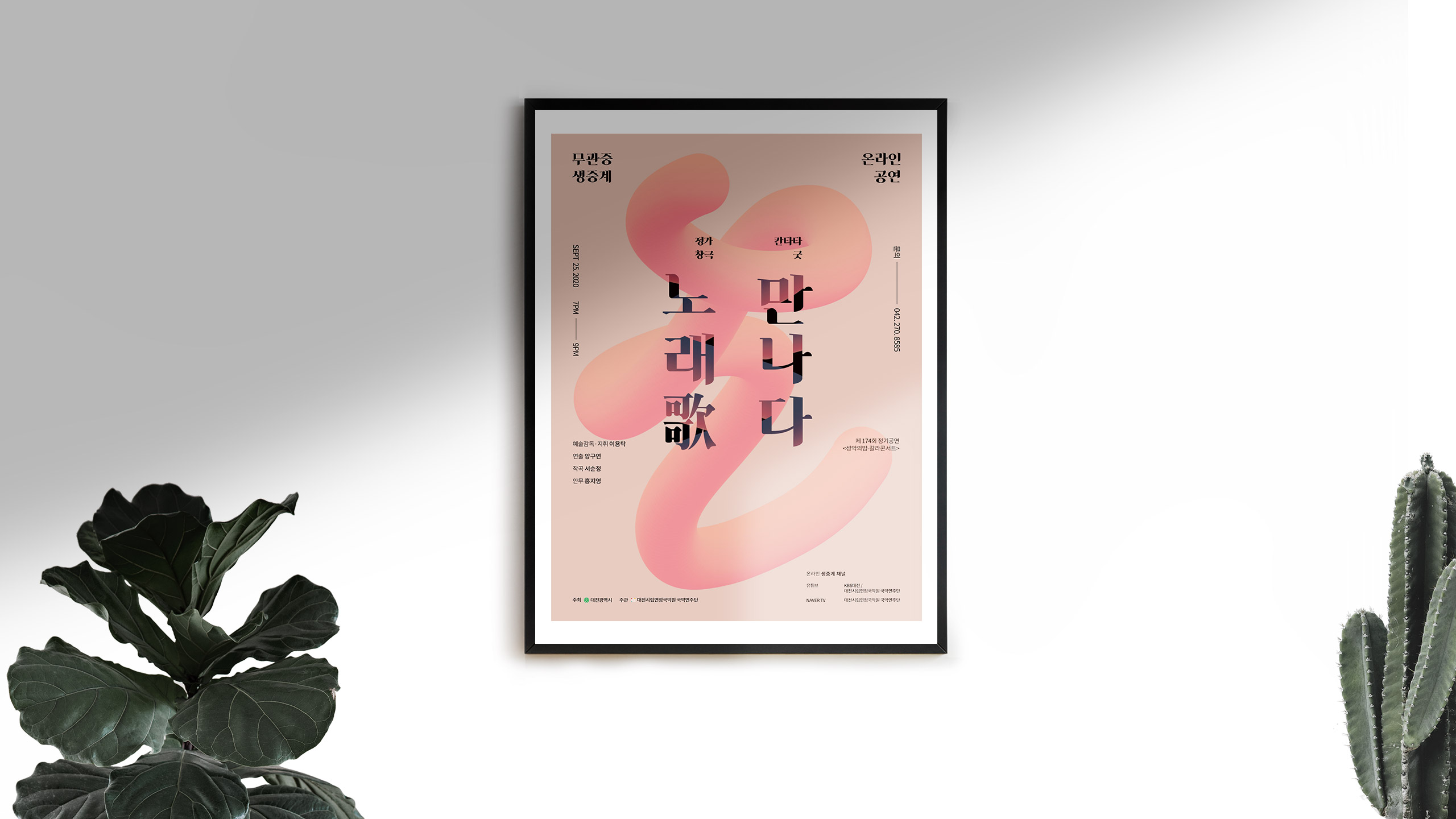 대전광역시·대전시립연정국악원 국악연주단의 제 174회 정기공연 포스터입니다. 포토샵 믹스브러시와 클리핑마스크 등의 효과를